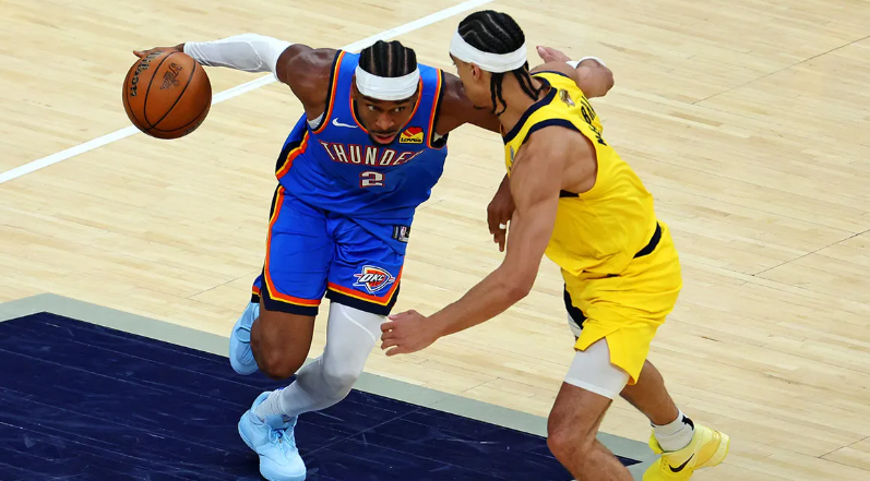 不可否认,亚历山大的个人能力堪称顶尖,但他的比赛方式,却正在逐渐成为雷霆队前进道路上的沉重枷锁。本赛季季后赛,他场均9.1次罚球,高居全联盟榜首,总决赛前三场更是以26次罚球创下历史同期第三高。然而,与之形成鲜明对比的是,步行者核心哈里伯顿三场比赛0次罚球。这种判罚尺度的巨大差异,在主场被无限放大——雷霆主场场均罚球比对手多12.3次,亚历山大的“造犯规”技巧在裁判的哨声中屡试不爽,可到了客场,当对抗尺度提升、哨声密度下降时,他的效率便呈断崖式下跌。
