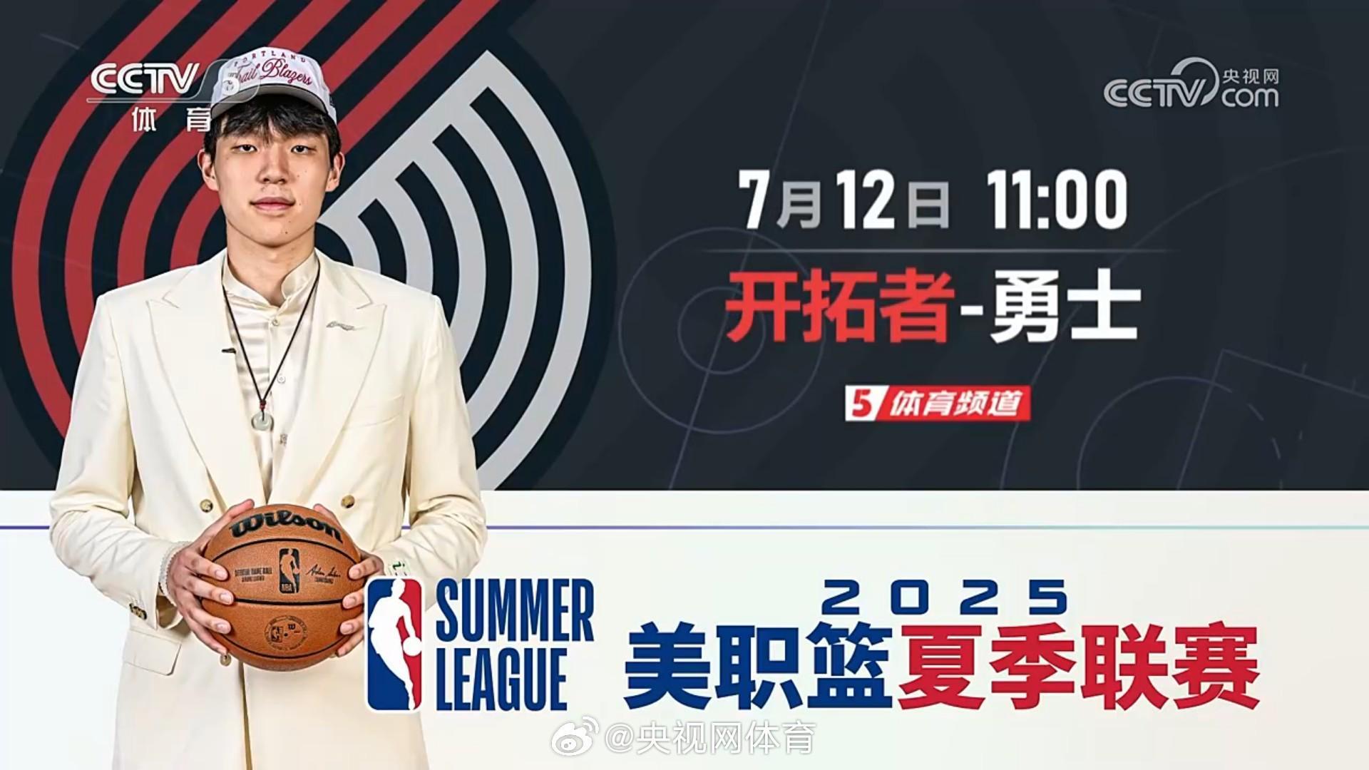期待杨瀚森首秀,CCTV5明日将直播开拓者vs勇士夏季联赛